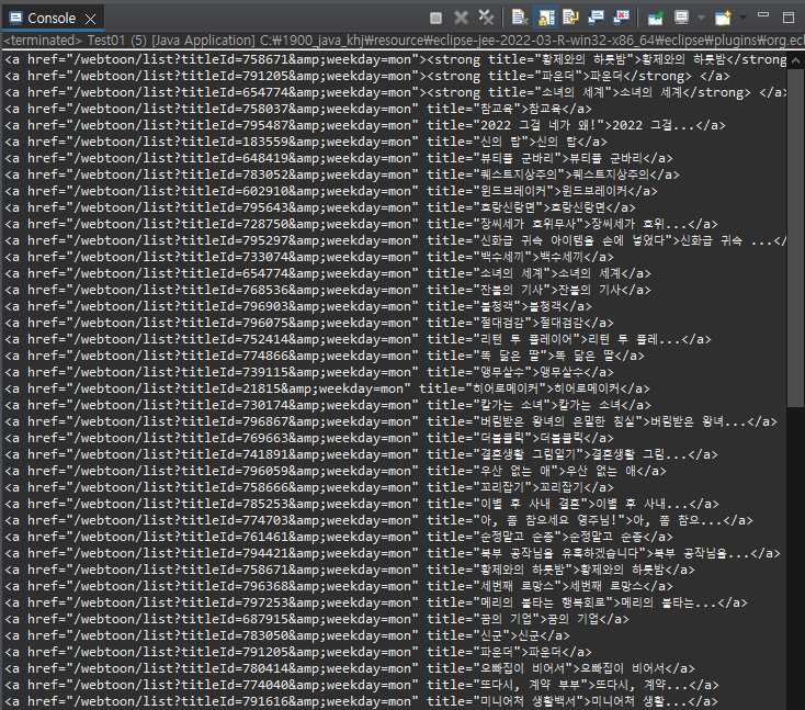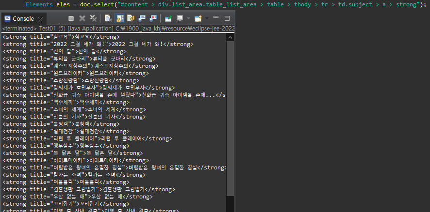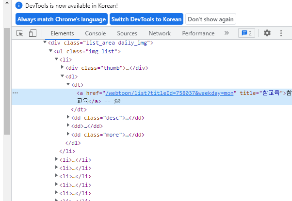 해당 웹툰페이지의 제목을 모두 가져올 수 있다고 예상가능하다